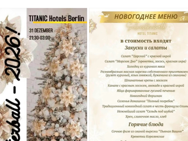 Приглашаем Вас на НОВОГОДНИЙ БАЛ 2026 в Отеле TITANIC на Gendarmenmarkt- Berlin.🍾🎊❄️